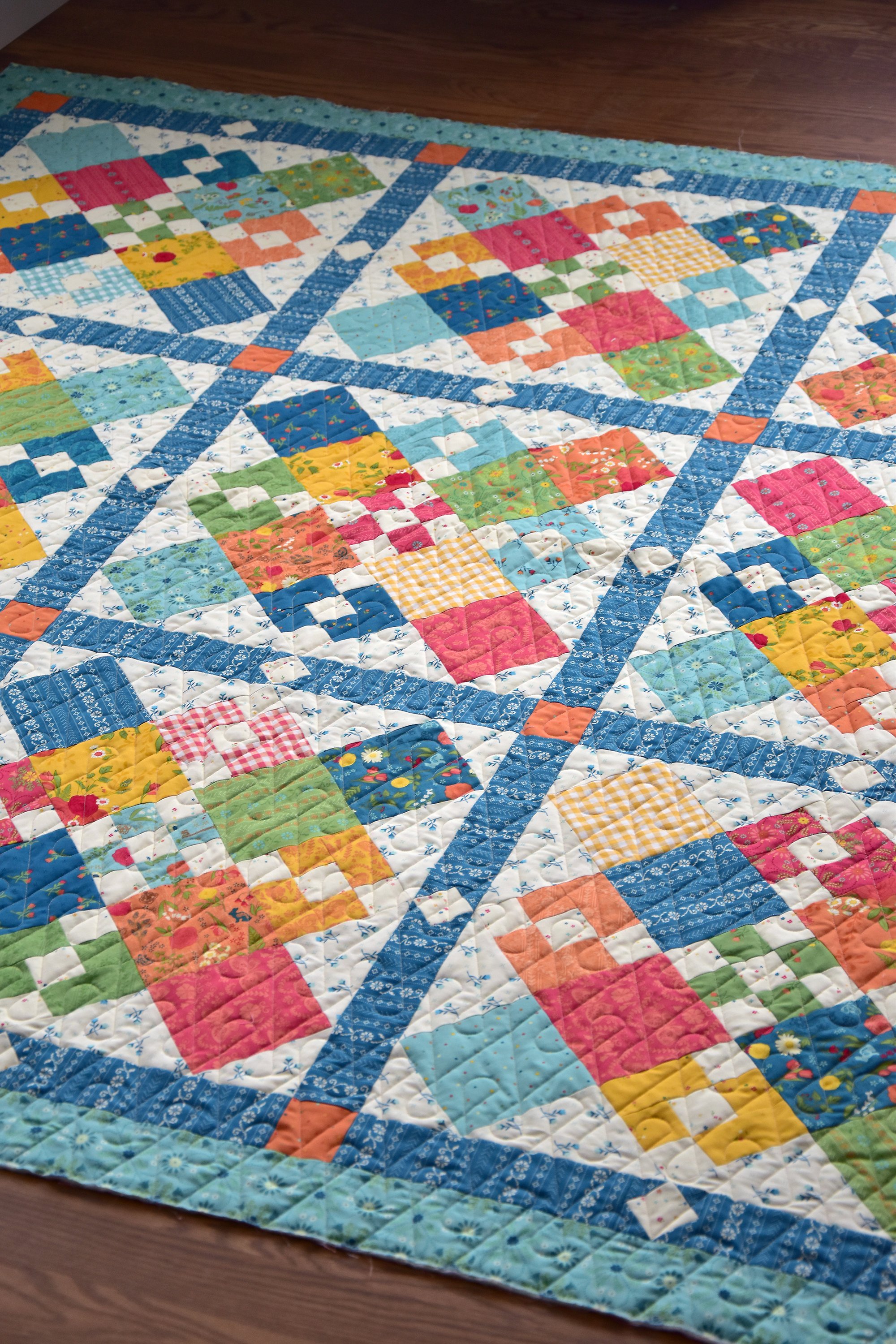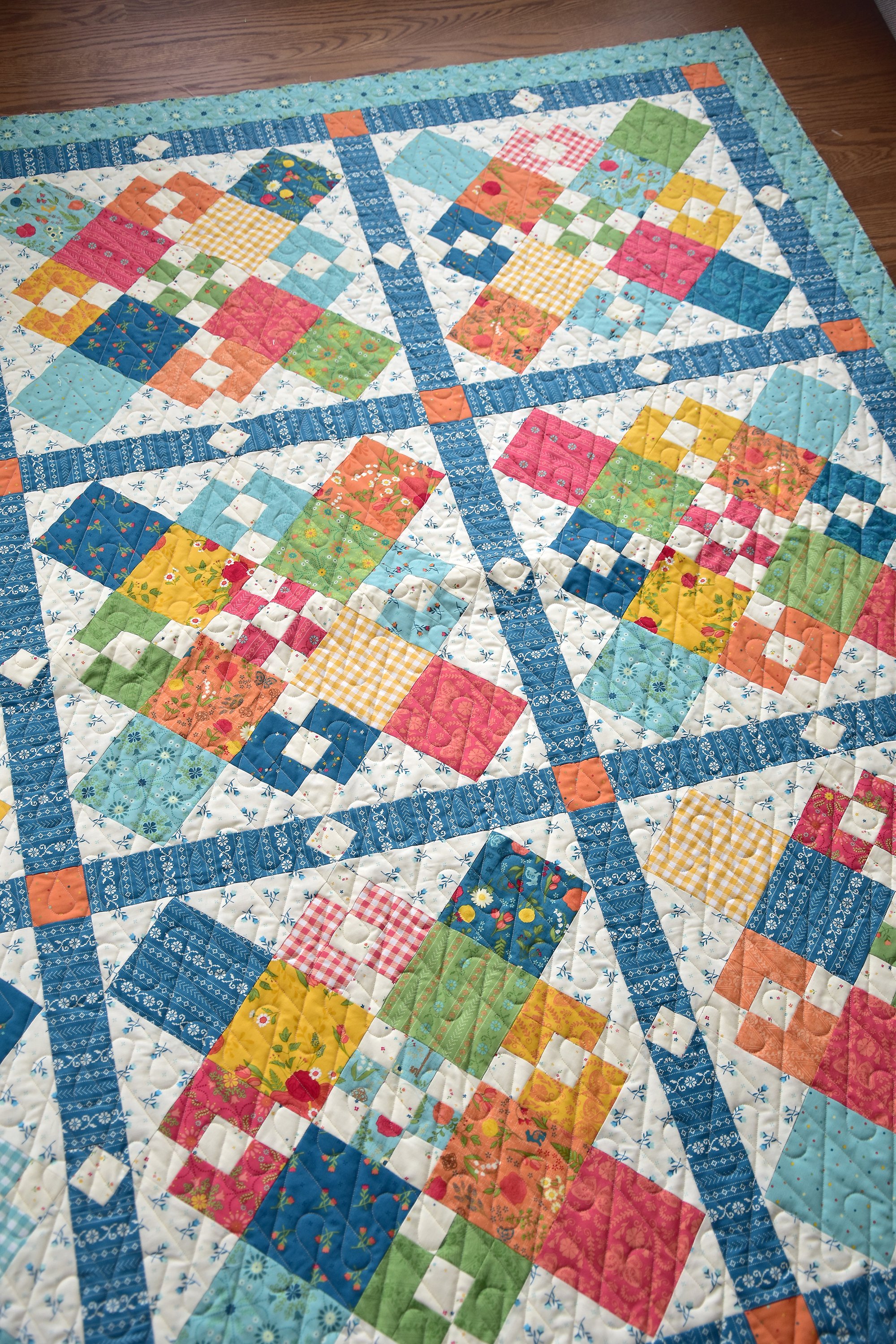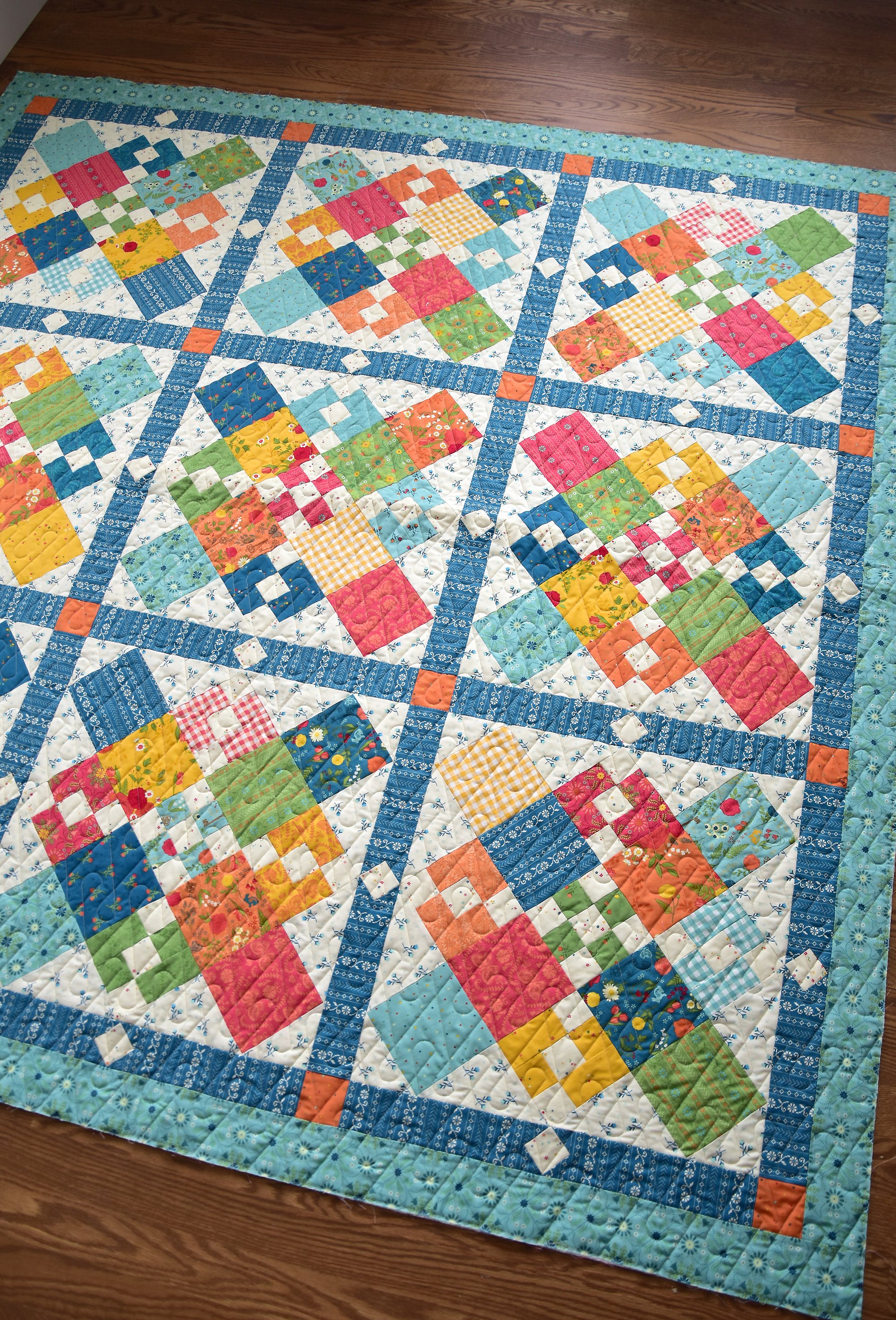 This kit features the First Blooms collection by Heather Peterson for Riley Blake Designs. The kit includes fabric for the quilt top, plus binding fabric. The kit will include one 10" stacker (so you will have a few leftover - see pattern back image), plus yardage for the background, the sashing, borders and binding.