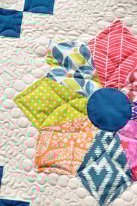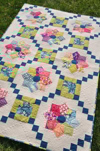 This pattern was originally found in our Angles With Ease 2 book but has now been made available as a single pattern. The design uses our Triangler ruler or the included template to cut triangles that are then sewn using a dresden plate type technique to make the blocks. The blocks are then appliqued onto the background fabric and combined with the chain blocks to make this simple, yet fresh design.