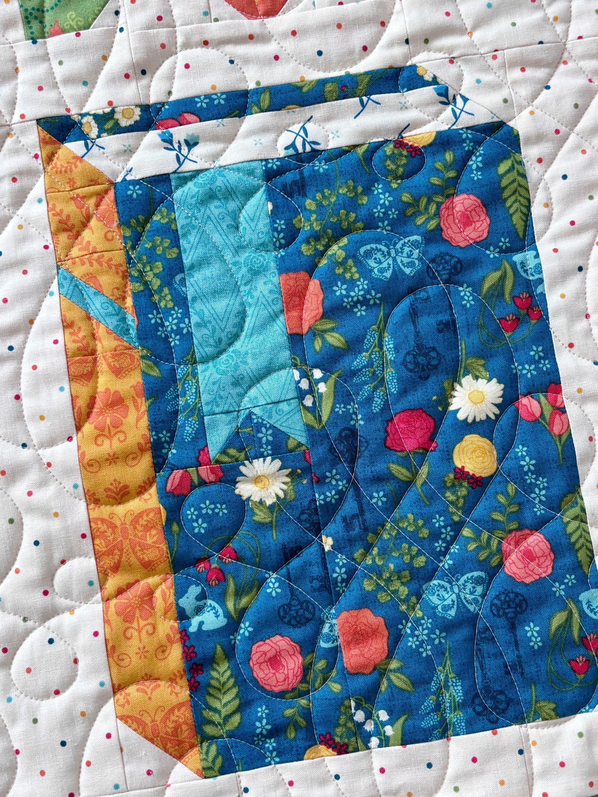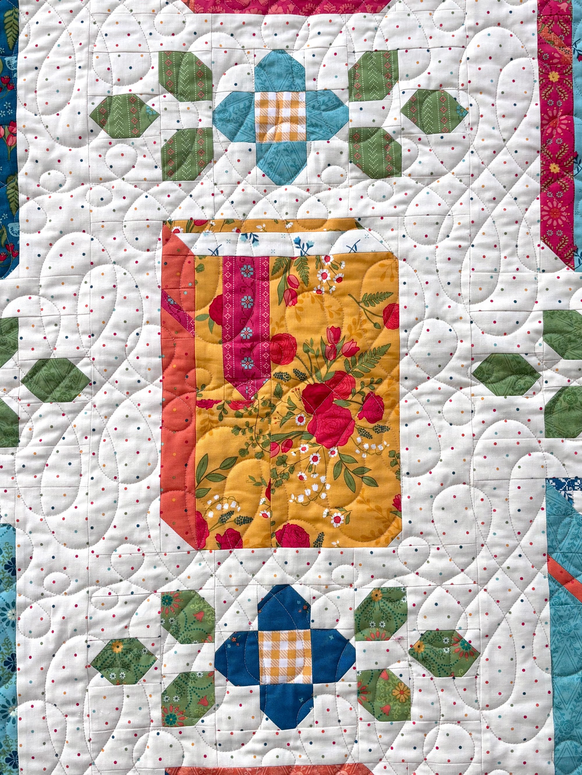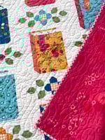 This pattern is for all the book lovers that are also quilters! Traditionally pieced with templates. Features the Orchard House fabric collection by Heather Peterson for Riley Blake Designs, including the text print with all of my favorite sayings from the Little Women book and movies. The back cover quilt features the first Blooms collection by Heather Peterson for Riley Blake Designs. The pattern is traditionally pieced using folded corners, so requires no templates or applique.