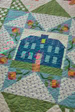 The Orchard House quilt is inspired by the beloved home of the March Girls in the Little Women book and movies. Traditionally pieced with no applique or templates. The pattern covers features the Orchard House fabric collection by Heather Peterson for Riley Blake Designs. A photos also show another version featuring our First Blooms collection.
