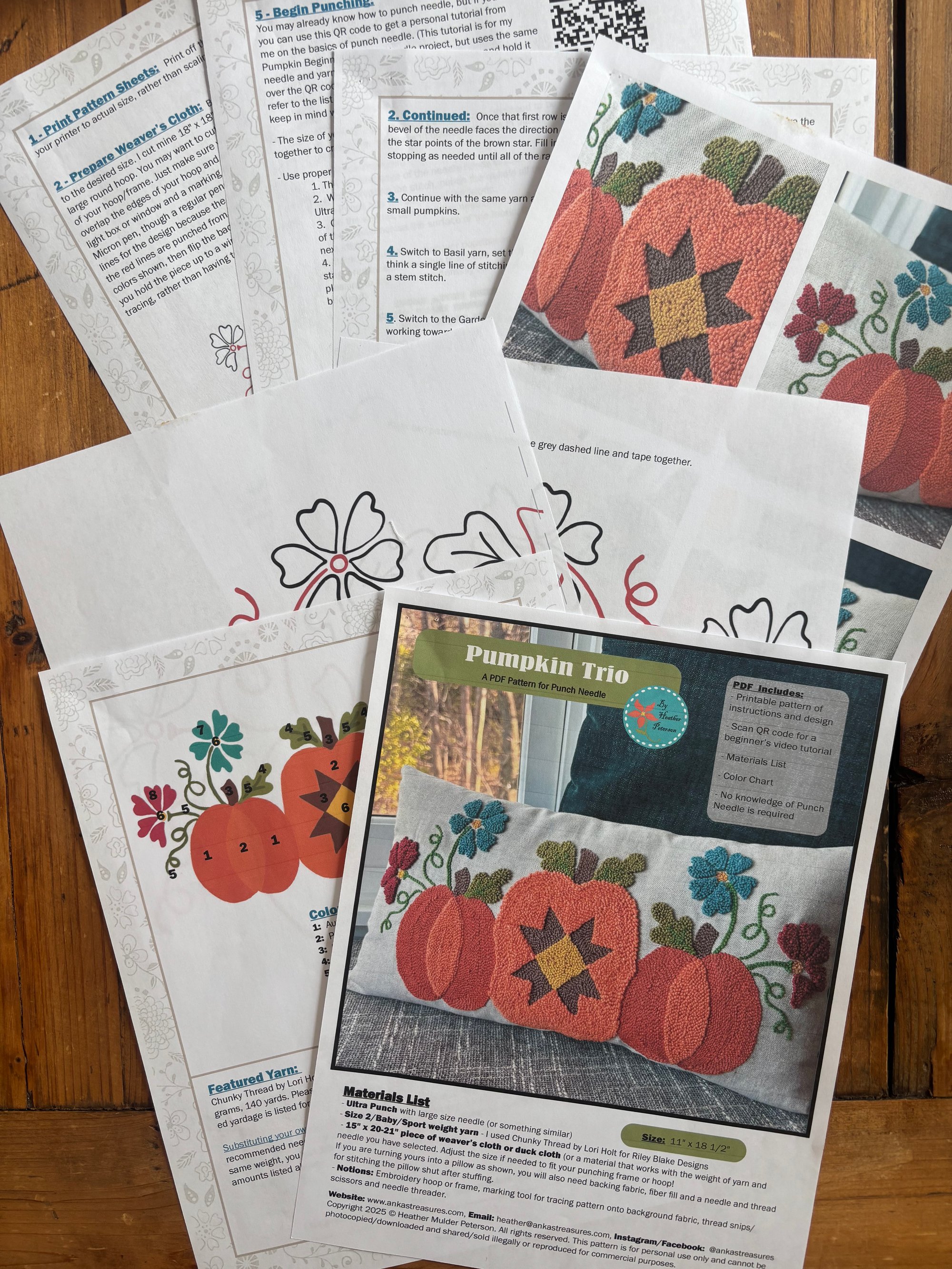 PDF pattern for punch needle, based on our Pumpkin Trios quilt pattern.
